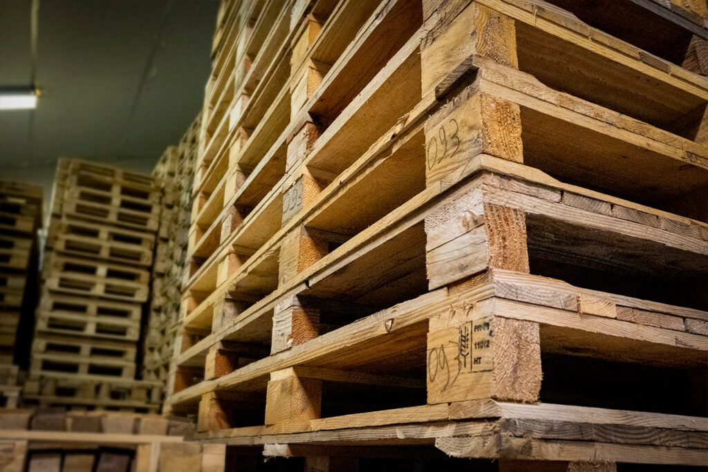 Te repareren pallets worden gerepareerd en gesorteerd.